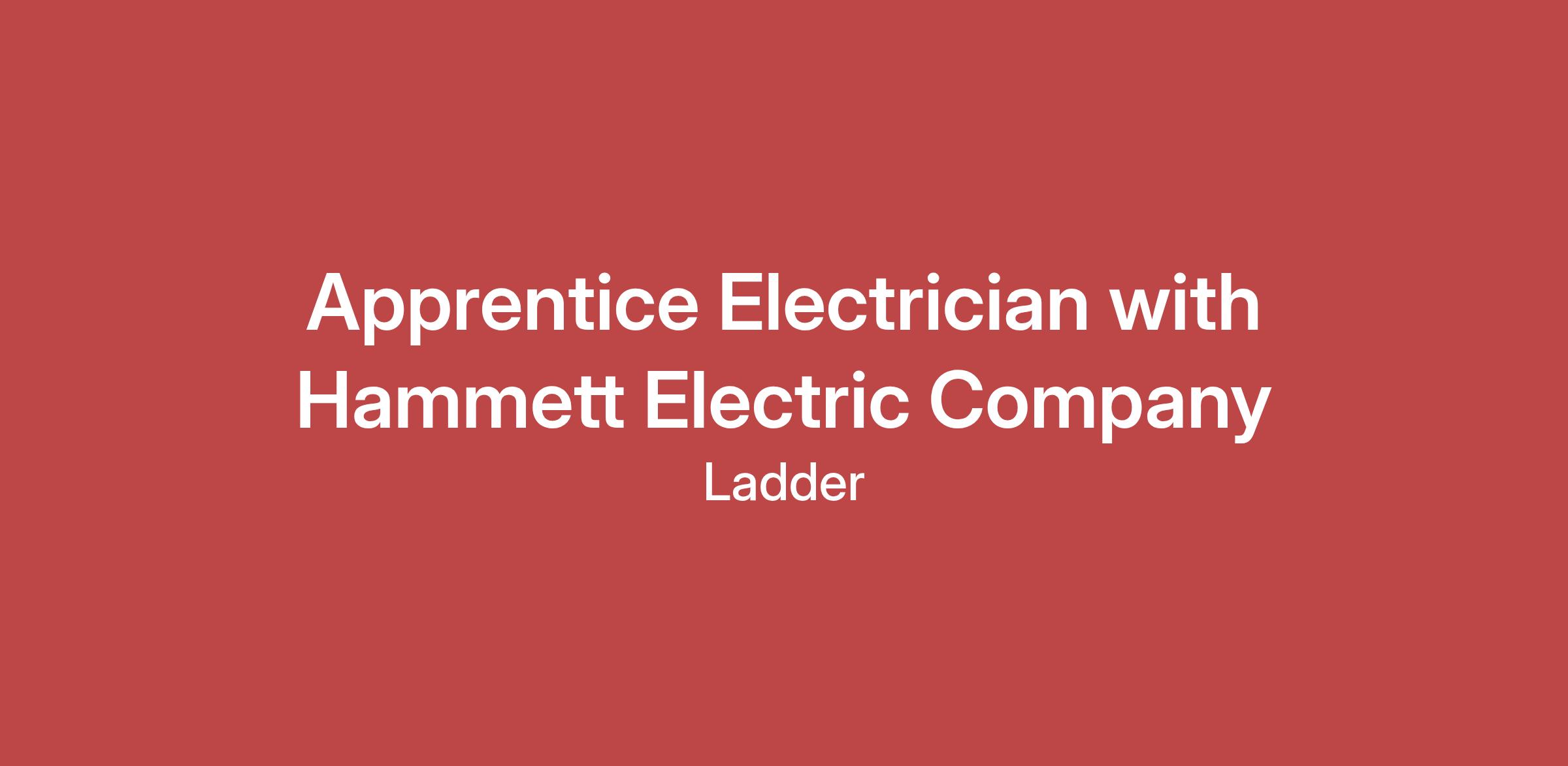 Apply On Ladder: https://www.meetladder.com/e/Hammett-Electric-Company-p7FQT3YeYj/Apprentice-Electrician-Augusta-GA-jyx5J0NwTe