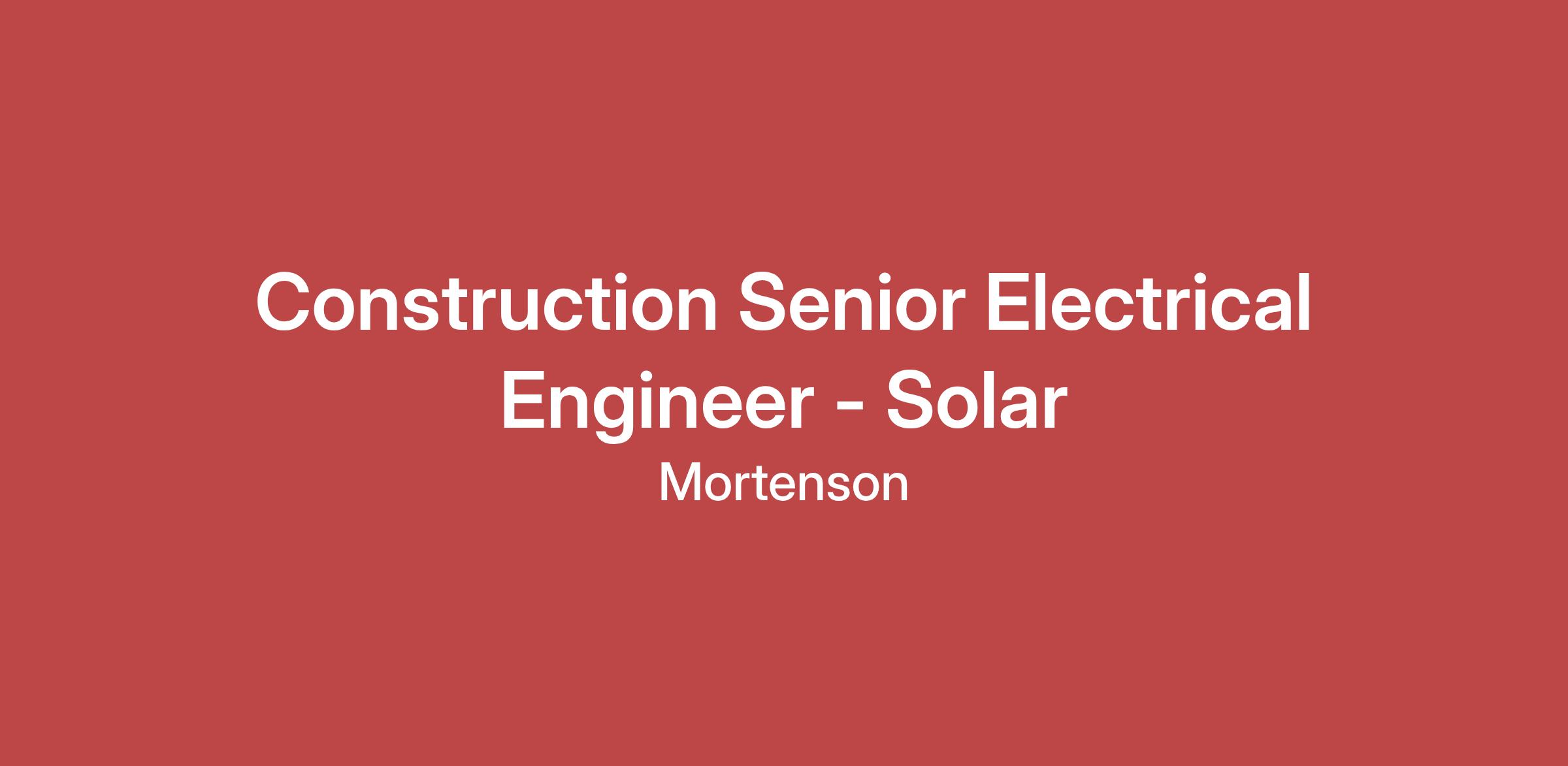 Mortenson is currently seeking a Senior Electrical Engineer to join our Solar group that will provide electrical technical support throughout the entire construction project.