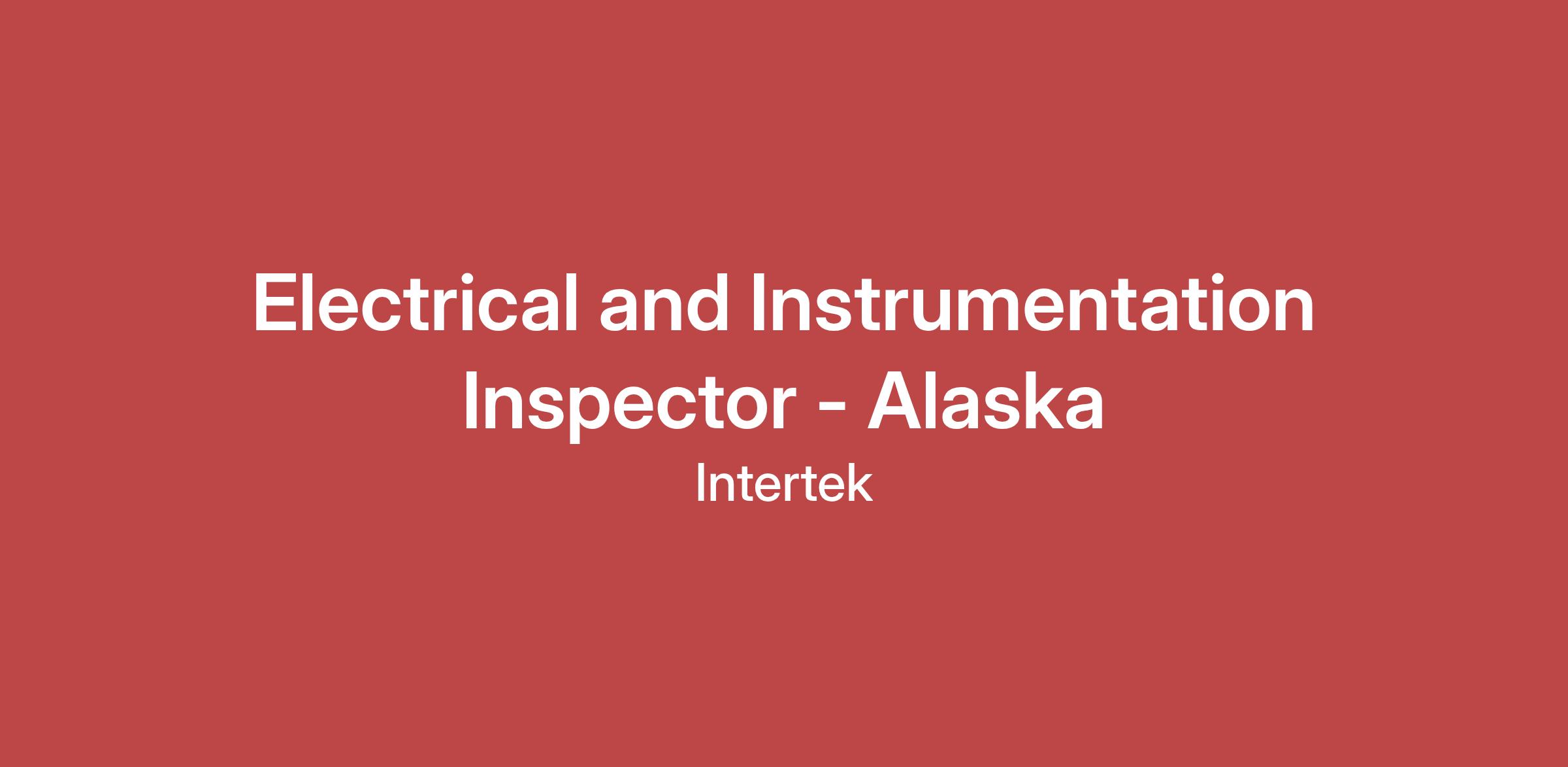 Job Title: Electrical and Instrumentation Inspector - Alaska, United States (Regular, Full Time)