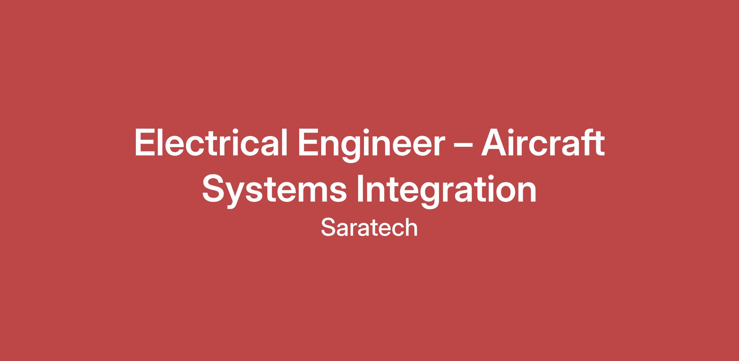 Saratech is supporting a confidential aerospace client on advanced aircraft systems integration programs and is seeking Electrical Engineers at multiple experience levels.