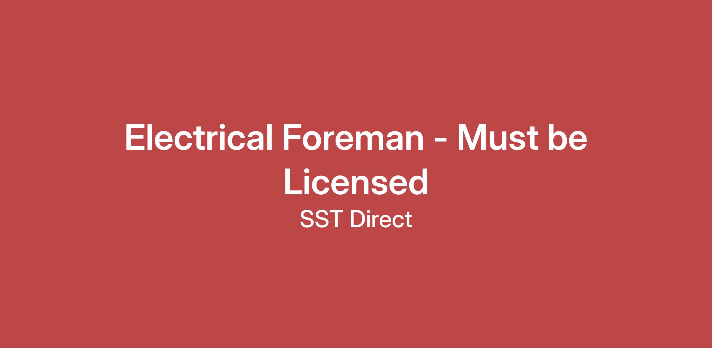 Electrical Foreman - Must be Licensed