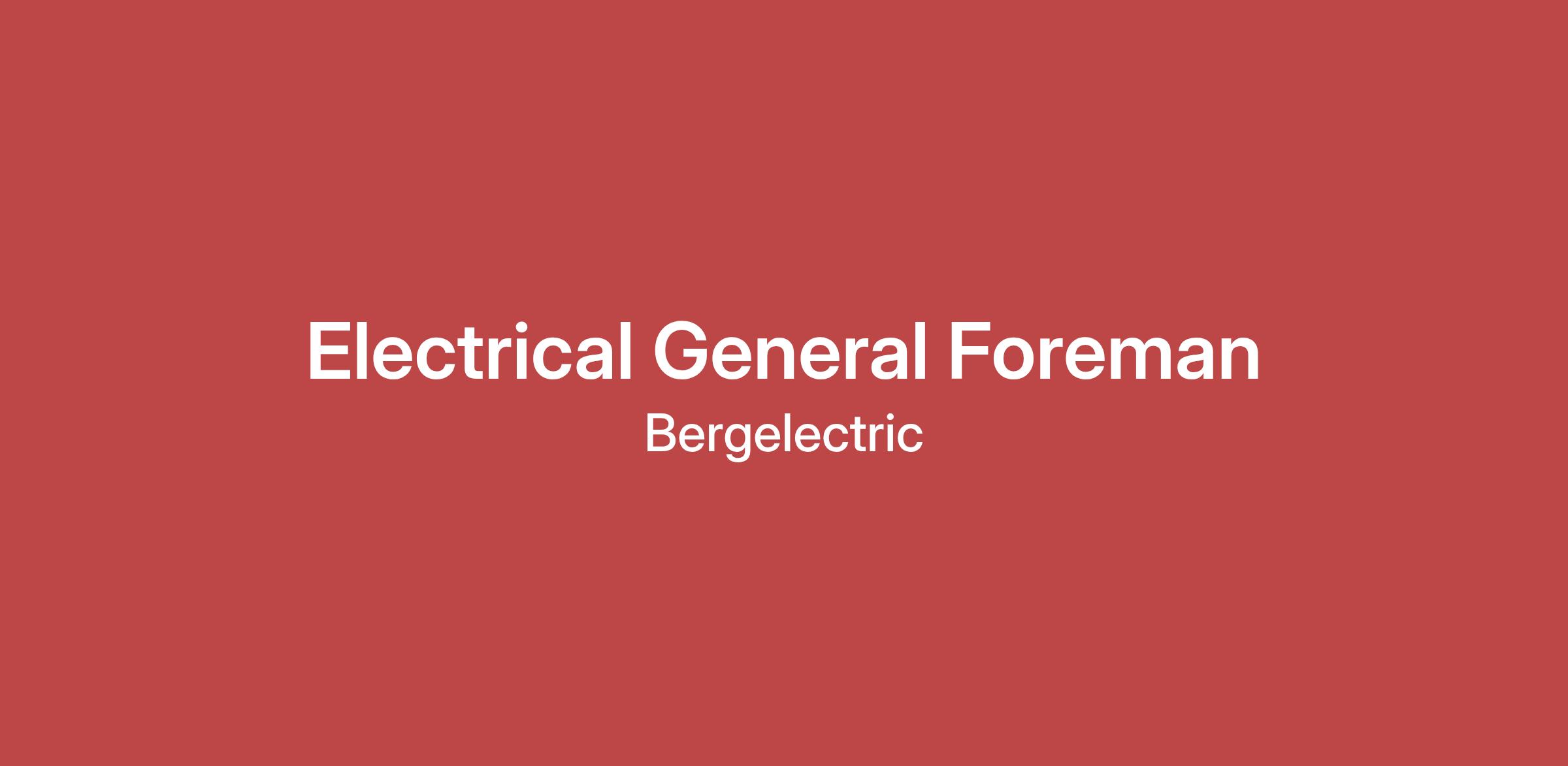 Function as a General Foreman for Bergelectric Corp.; managing the labor, materials, and production for electrical construction projects. Provide technical expertise in installing and troubleshooting electrical wiring and equipment. Work cooperatively with the general contractor and/or customer in managing the project, project schedule and employees. Monitor installations and ensure work is performed according to Bergelectric Corp. standards and project specifications. This is considered to be a safety sensitive position.