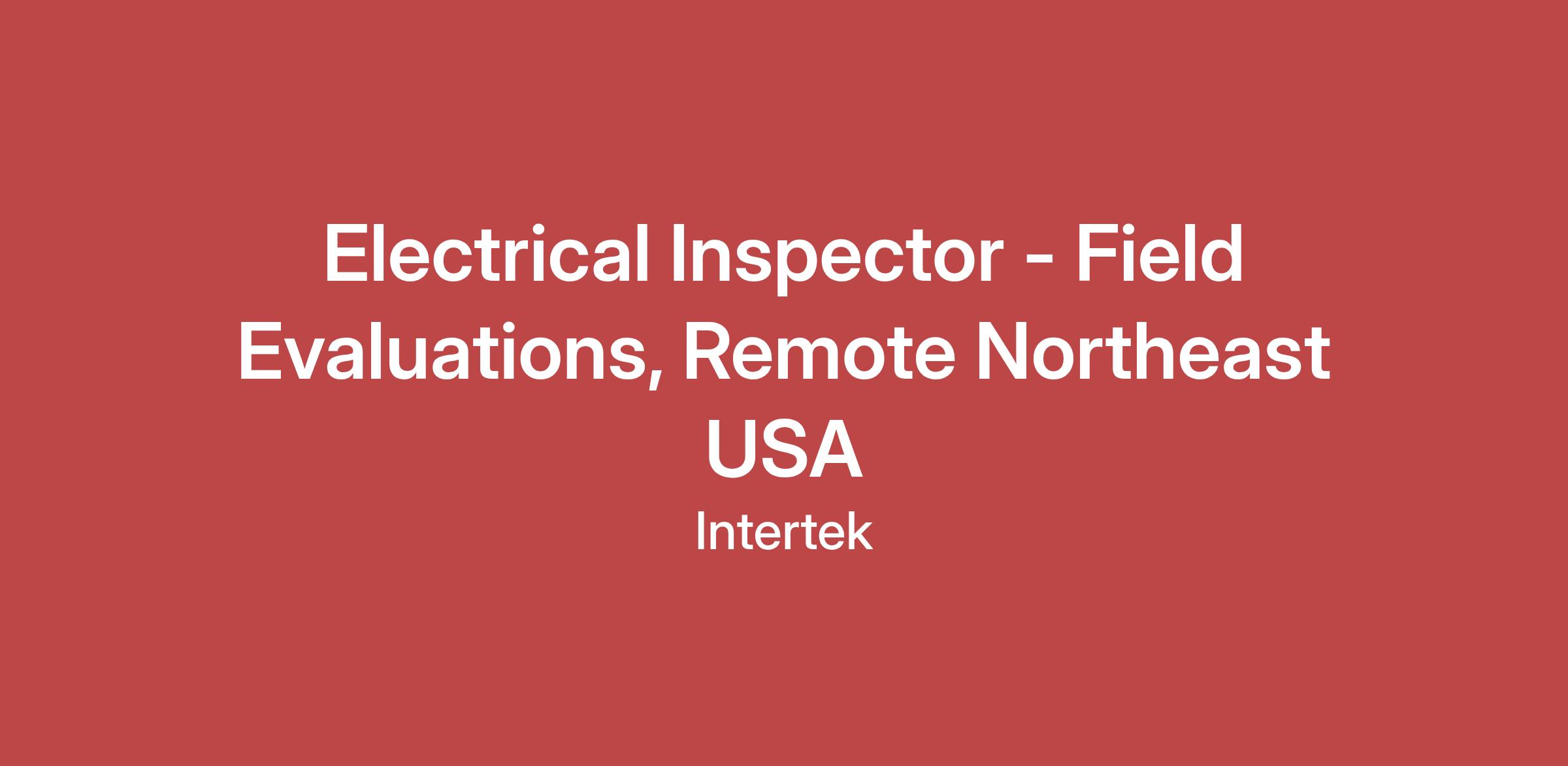 Intertek, a leading provider of ATIC (Assurance, Testing, Inspection, and Certification) Services, is looking for an Electrical Inspector - Field Evaluations, Remote, Northeast USA to join our Electrical team reporting to our Boxborough, MA office.