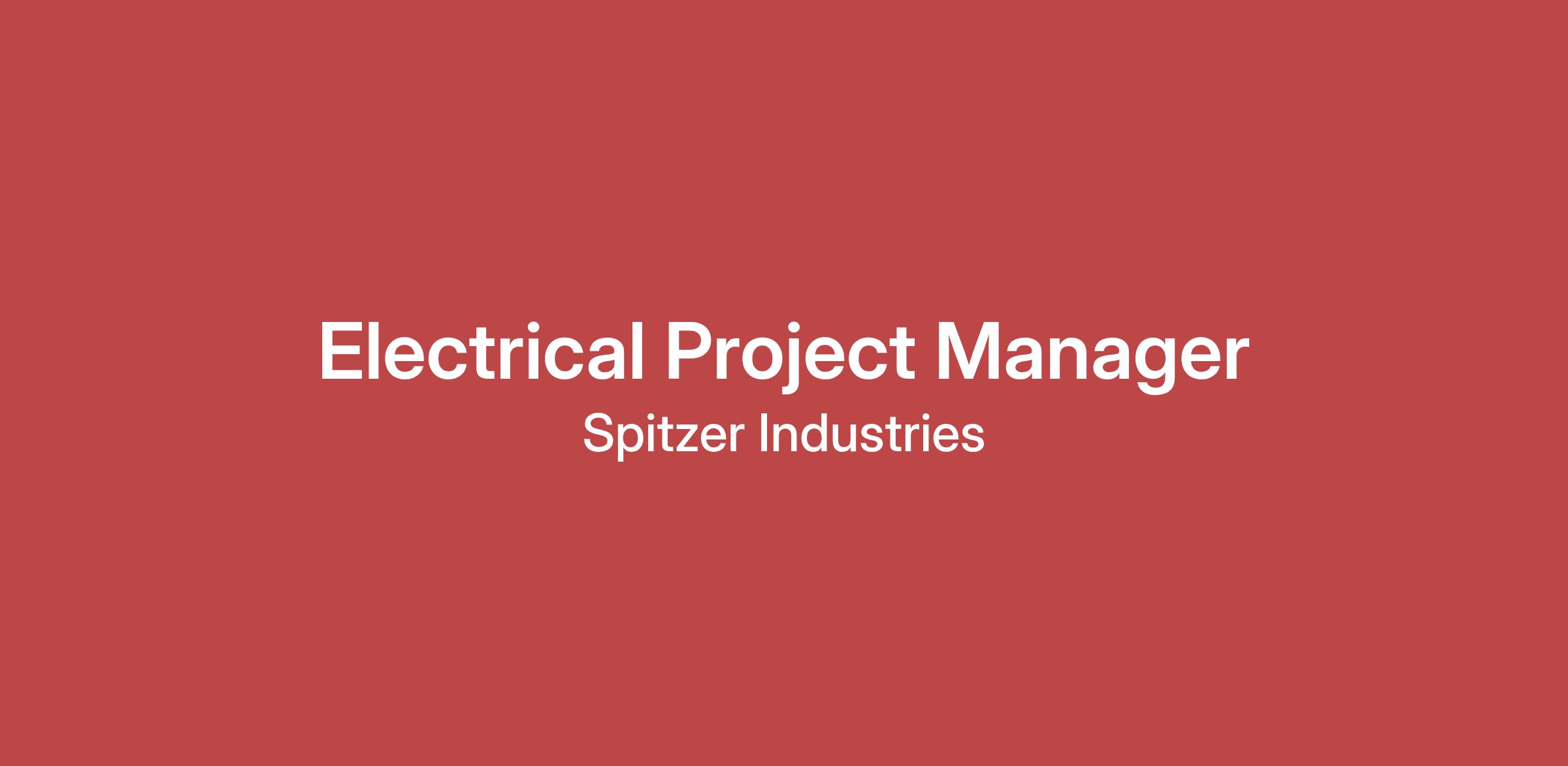 Spitzer, a recognized industry leader in designing and fabricating high-specification equipment, is currently seeking a Electrical Project Manager to join our team. The Electrical Project Manager reports to the Director of Projects. The primary duties of the Electrical Project Manager are the following: