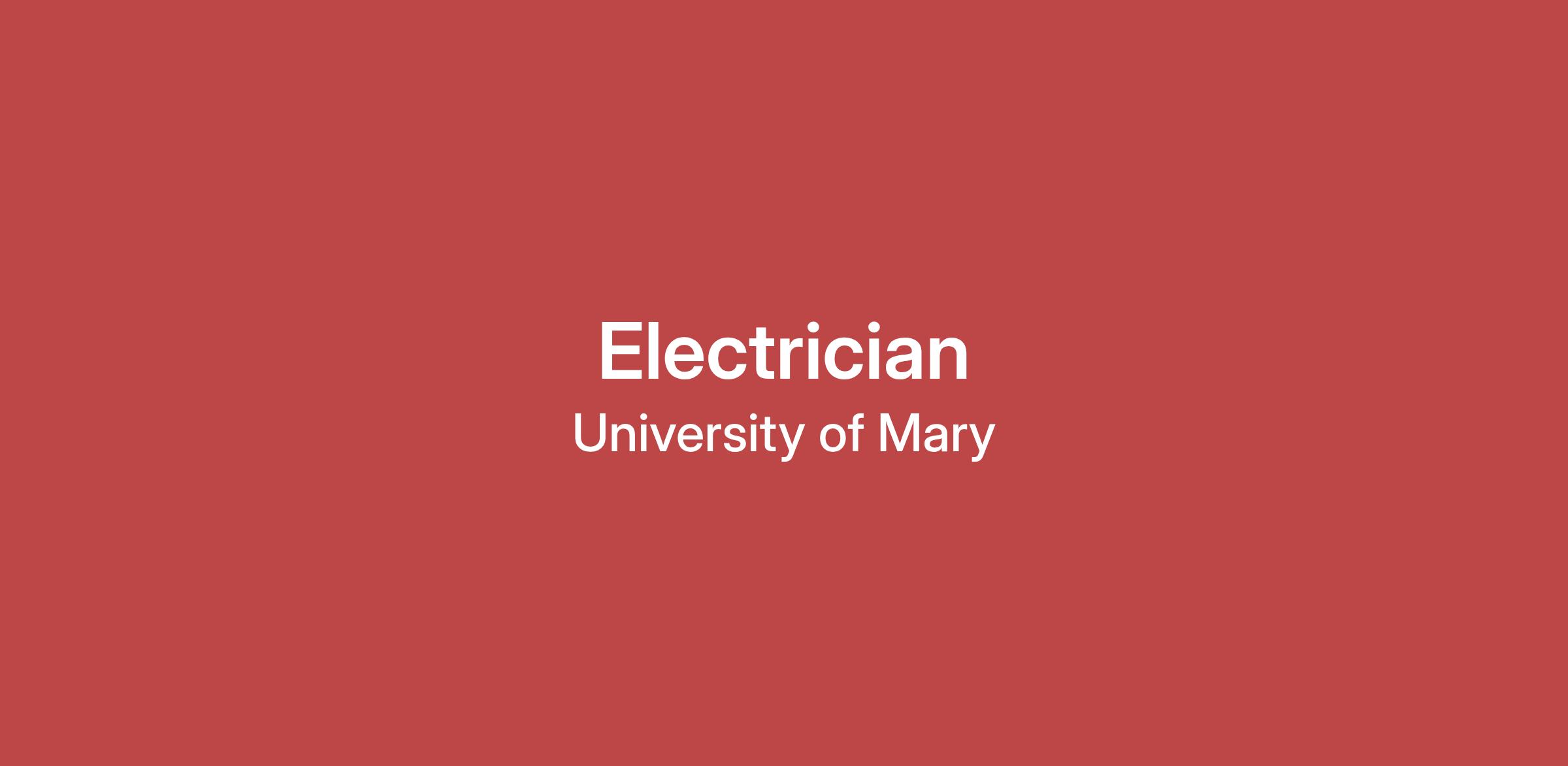 Electrician The University of Mary is seeking an Electrician who is at a minimum a journeyman electrician who will function primarily at installing and maintaining electrical systems and performing internal electrical projects. The successful candidate will have a background in the installation and troubleshooting of commercial electrical systems or in the installation and troubleshooting of HVAC, camera, and card access systems. A background in repairing appliances such as washers, dryers, and kitchen equipment is preferred but not required. Our ideal candidate is a self-motivated individual that has an optimistic can-do approach to work, is a team player that works well with others and is willing to pivot between different tasks as needed. Candidates will be invited to demonstrate a willingness to support the Christian, Catholic, Benedictine mission of the University of Mary. Benefits Include: