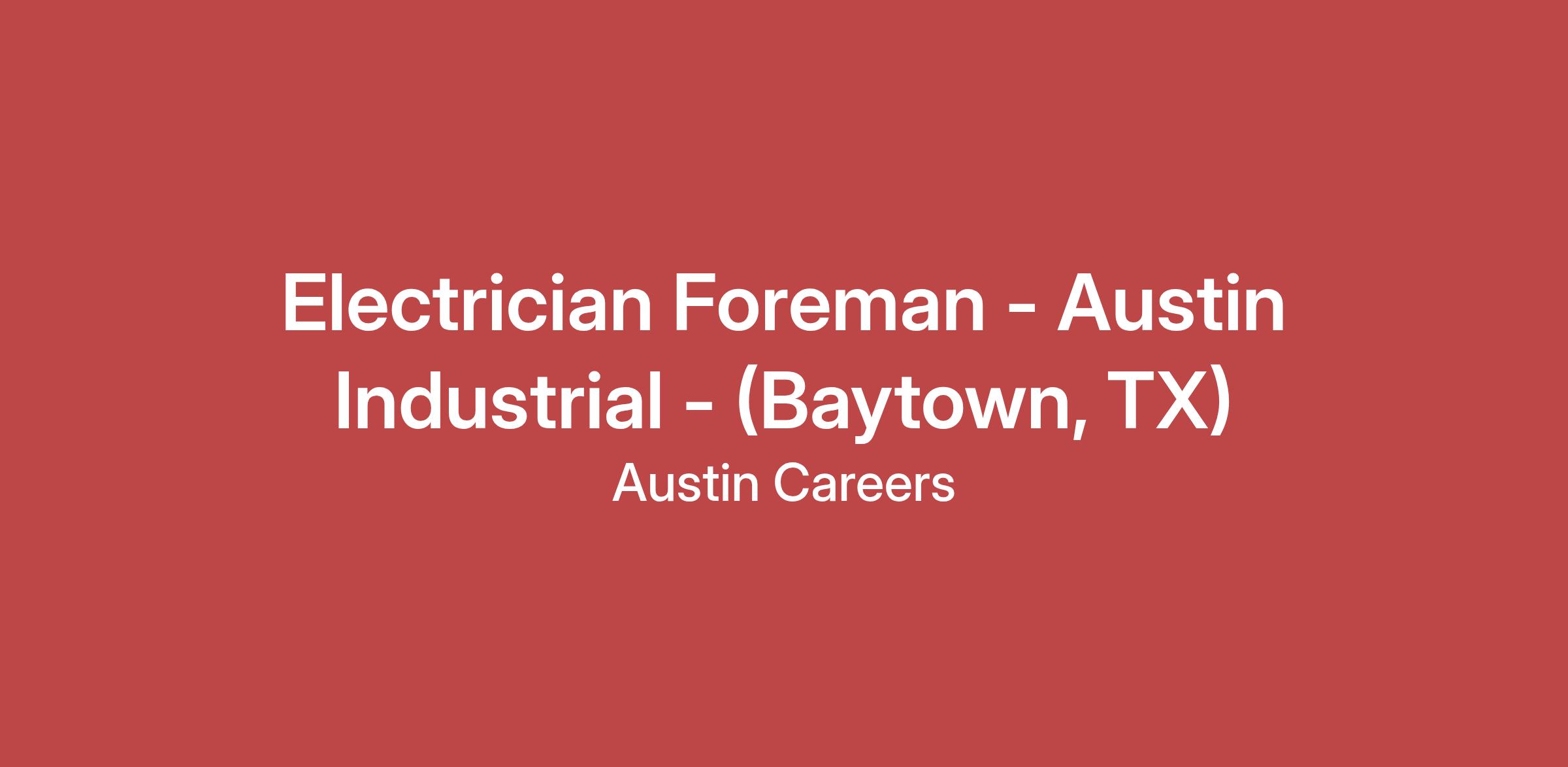 Austin Industrial is an Equal Opportunity Employer.