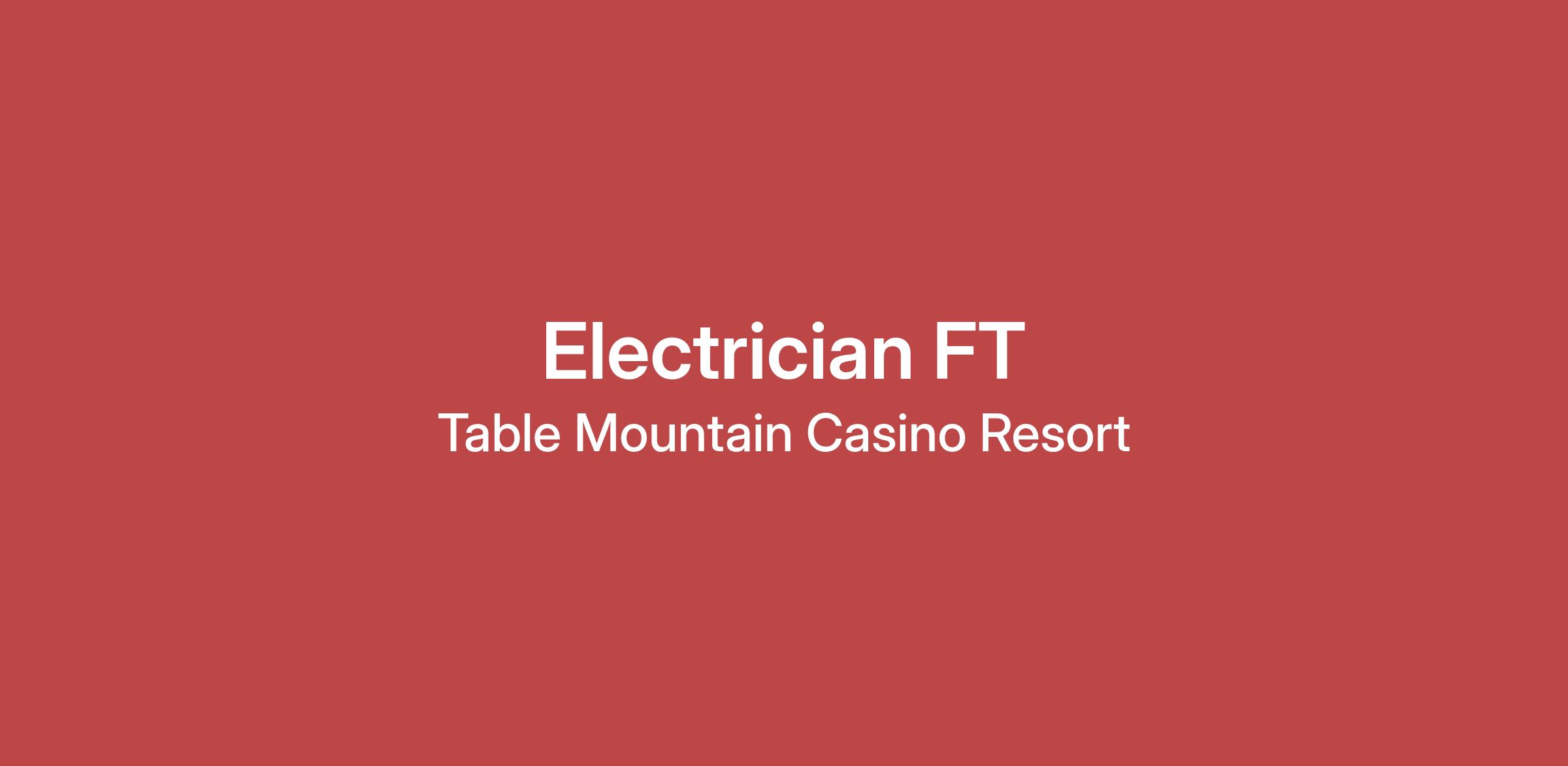 High School Diploma or equivalent, unless waived by Human Resources Management. Completion of an accredited four (4) year electrical apprenticeship program or an equivalent combination of vocational trade school, junior technical college, or on the job training is required. A valid California Driver’s License is required. Must be able to successfully pass a pre-employment drug/alcohol screen, background investigation, obtain and maintain gaming license.