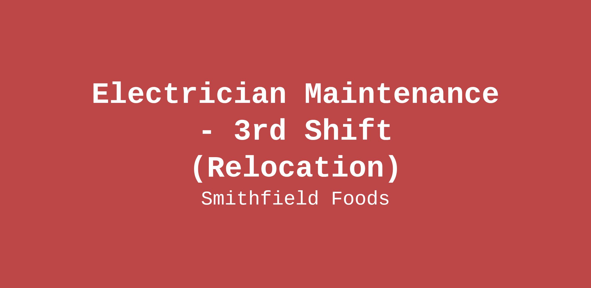 Smithfield is an equal opportunity employer committed to workplace diversity. All qualified applicants will receive consideration for employment without regard to race, color, religion, sex, sexual orientation, national origin, age, gender identity, protected veterans status, status as a disabled individual or any other protected group status or non-job characteristic as directed by law.