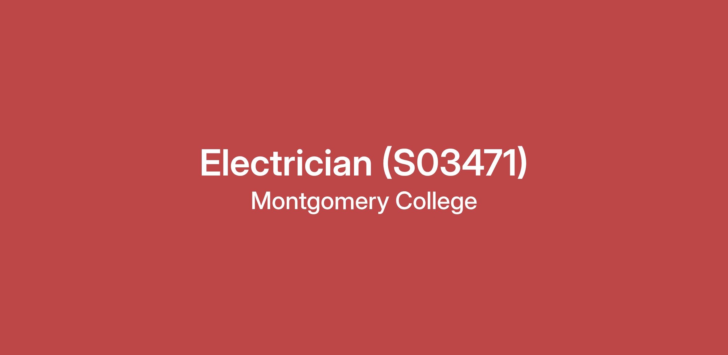 Montgomery College, Rockville Campus, has an immediate need for a Full-Time Electrician in the Facilities Department. The work schedule is Monday-Friday 7:30 am – 4:00 pm. This is a Bargaining, Non-exempt,