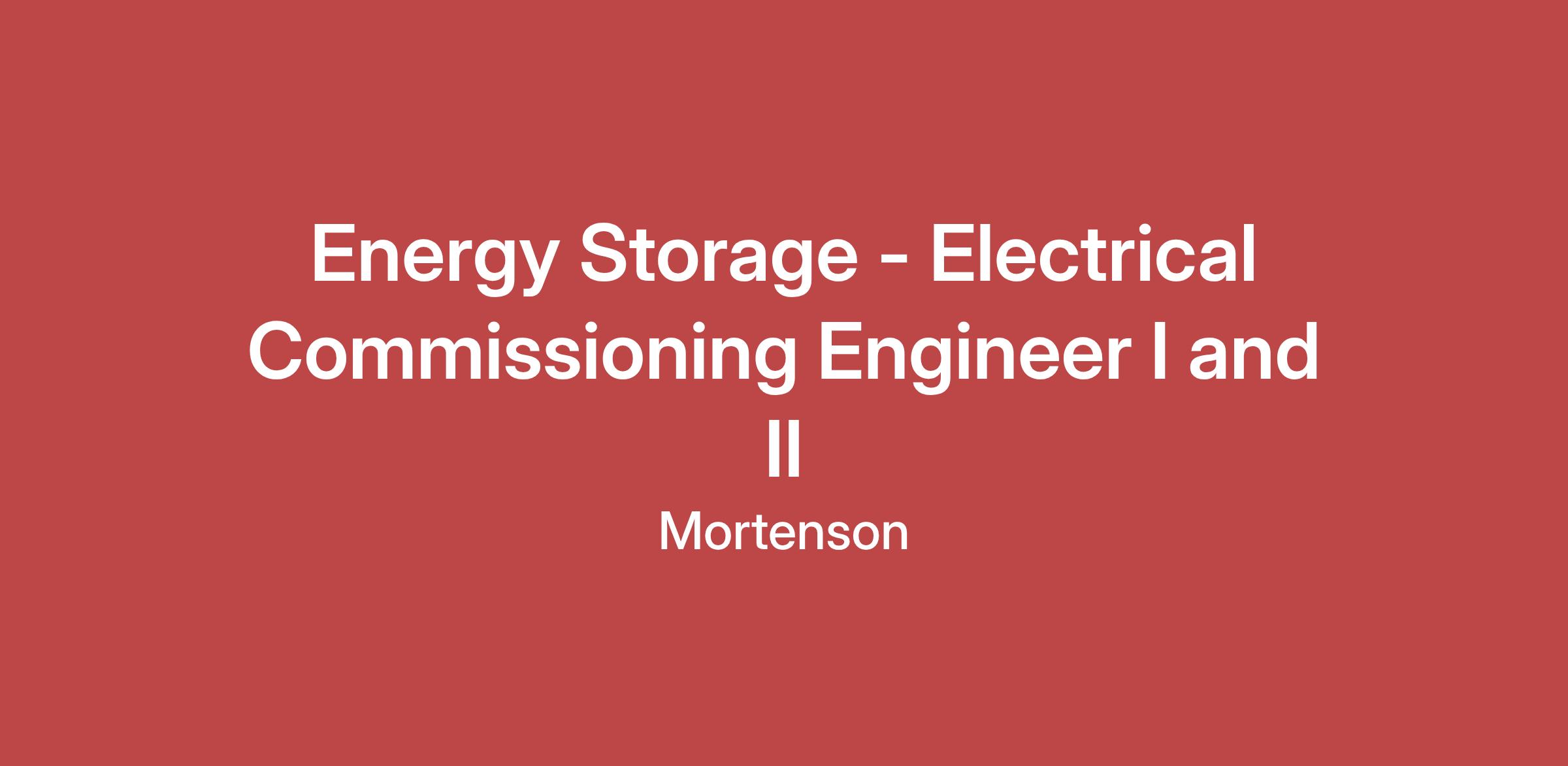Mortenson is currently seeking an experienced Electrical Commissioning Engineer I and II to join our Energy Storage Group to provide electrical technical support throughout the entire construction project. Strong communication skills are necessary as you will interact with staff at all levels in an ever-changing environment. Your ability to remain flexible, inventive, dedicated, and efficient with a high level of integrity and confidentiality is vital to your success in this role.