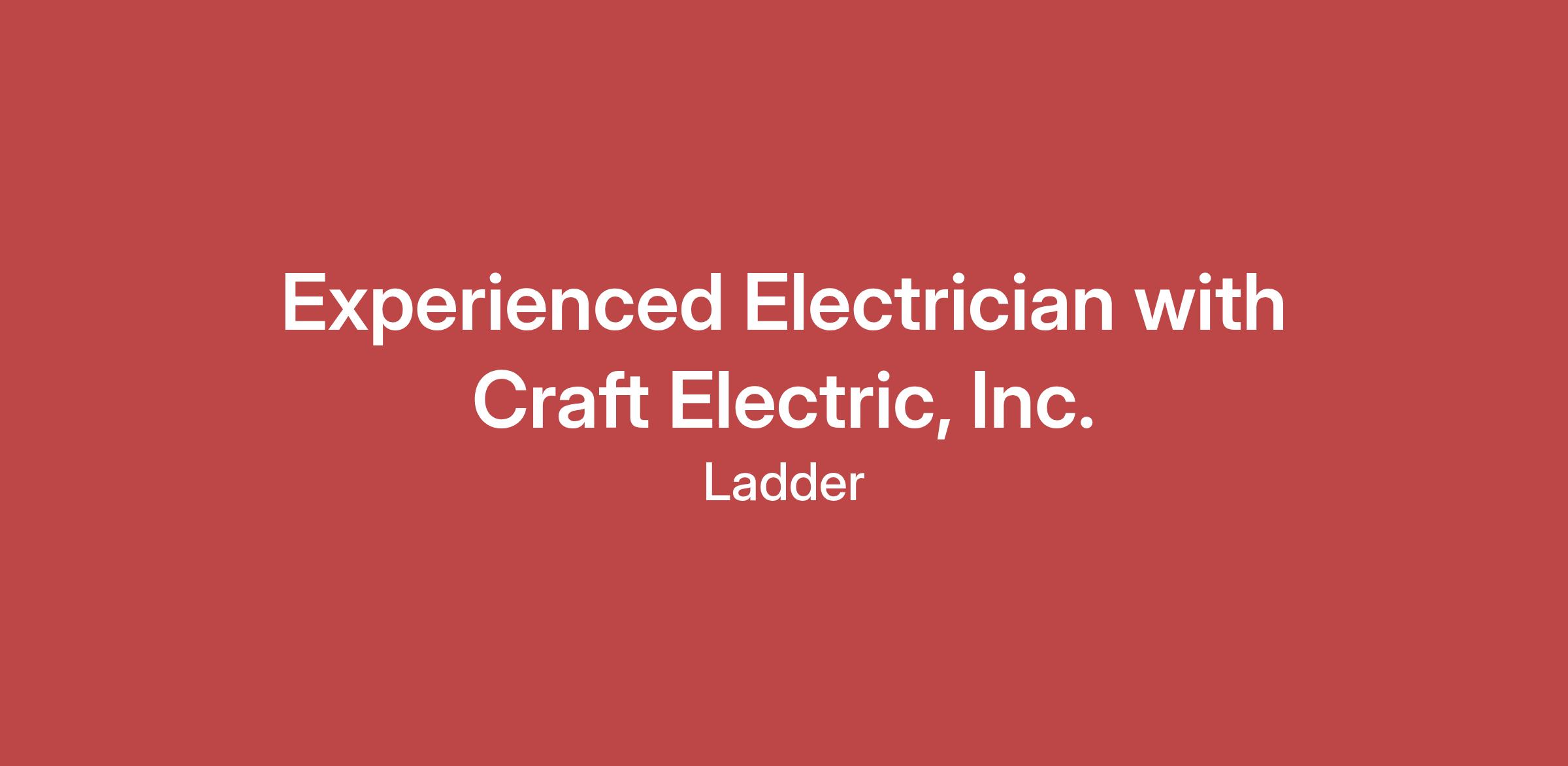 Apply On Ladder: https://www.meetladder.com/e/Craft-Electric-Inc-U3Fl3b81YT/Experienced-Electrician-Snellville-GA-XMDpzaOIq7