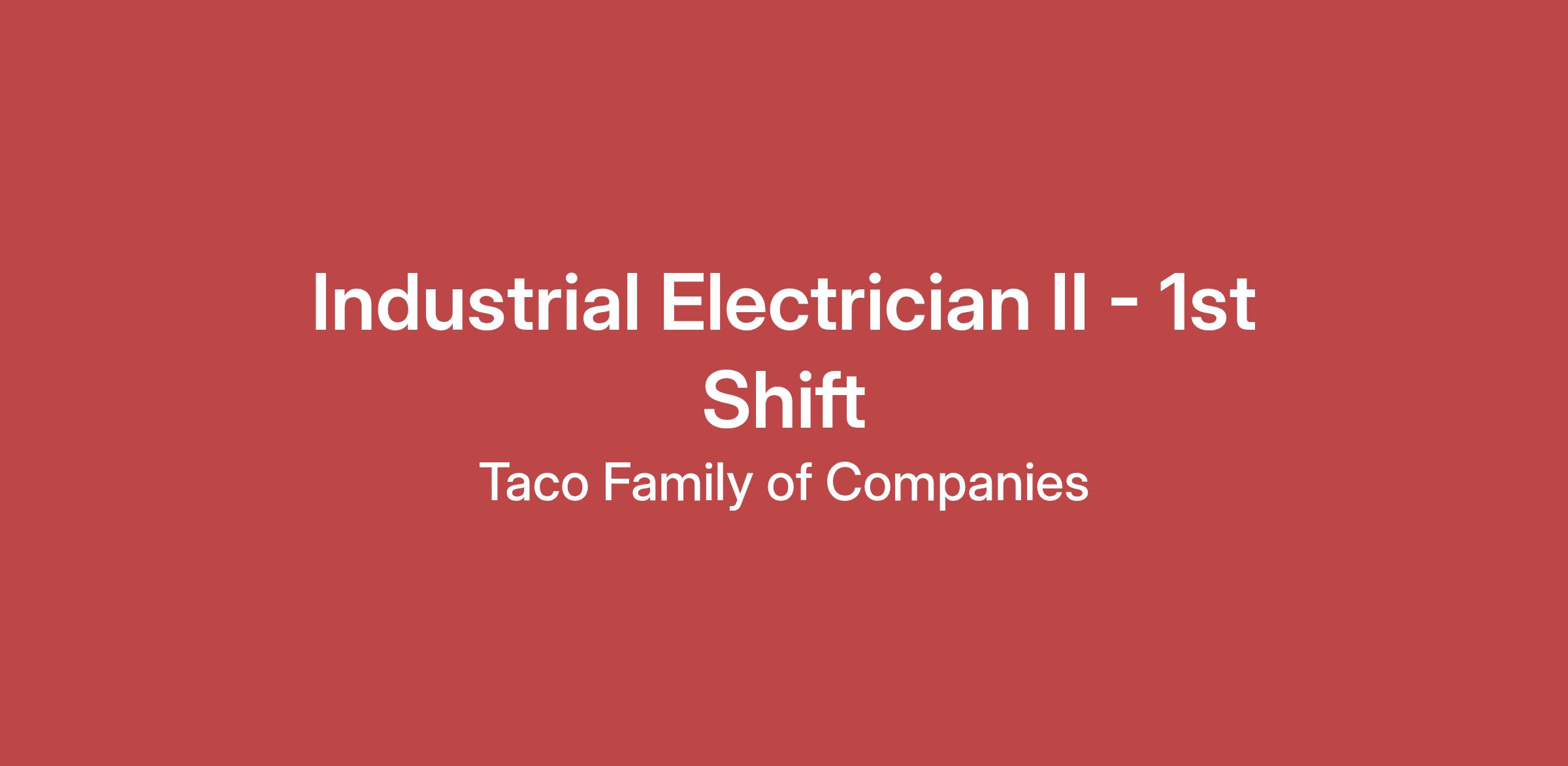 The Industrial Electrician II TFR (Taco Fall River) performs a wide range of duties in support of both building and machine electrical systems, as well as physical plant maintenance.