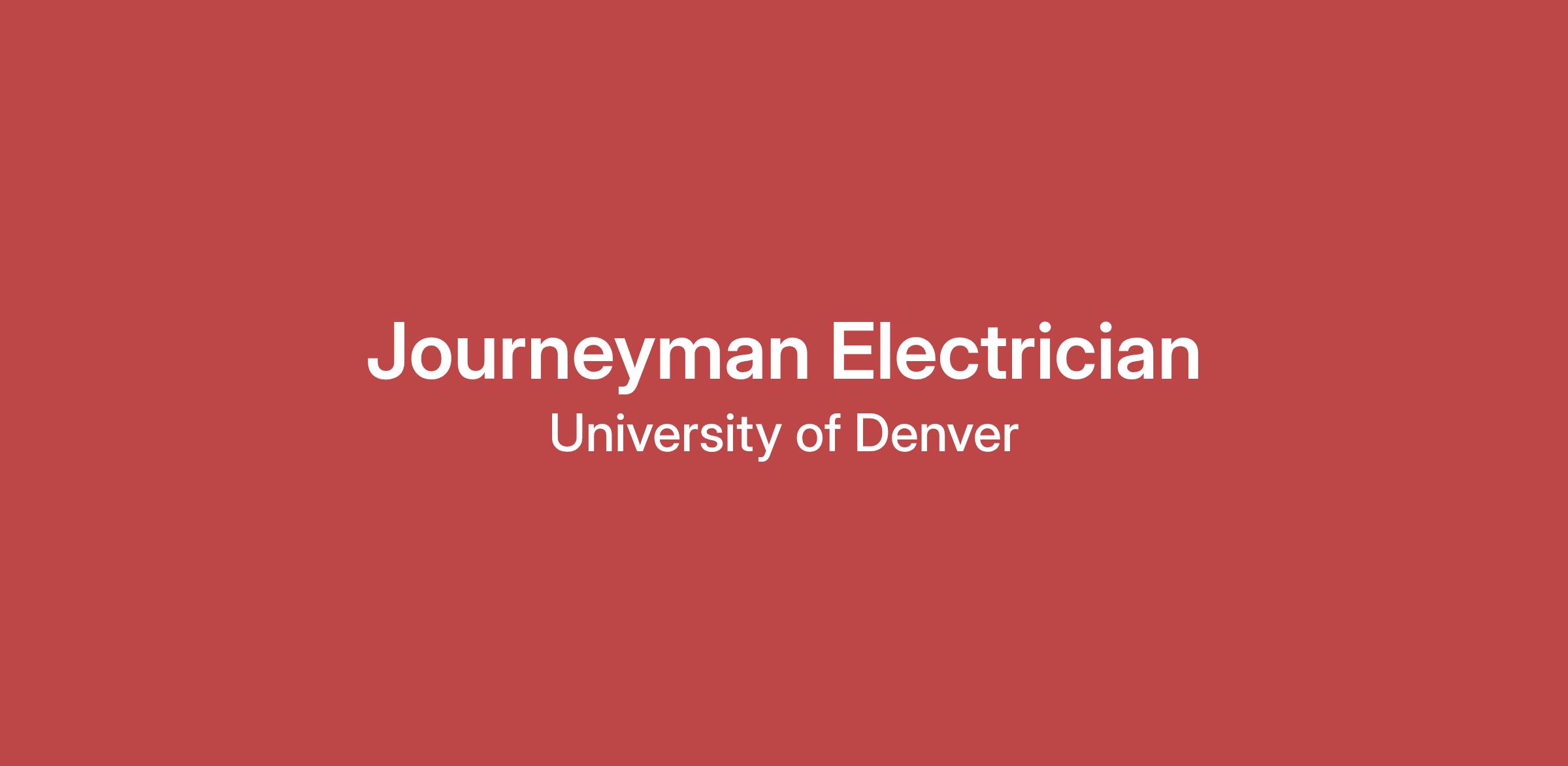 - Licensed by State of Colorado as a Journeyman Electrician Valid Colorado drivers license or equivalent.