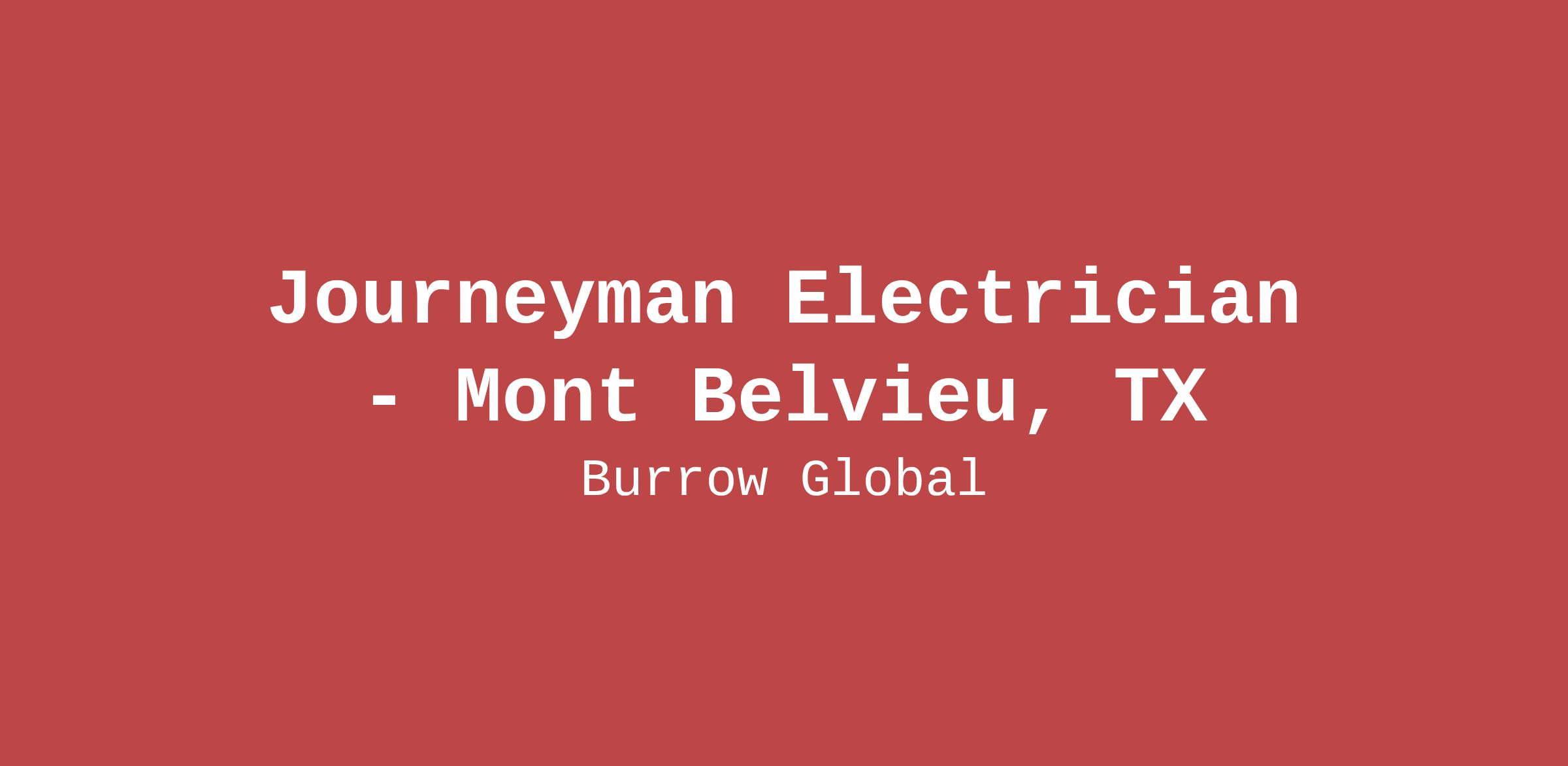 We have an immediate need for 8 Electricians that are licensed Journeyman in the State of Texas or hold an NCCER Industrial Electrician Certification.
