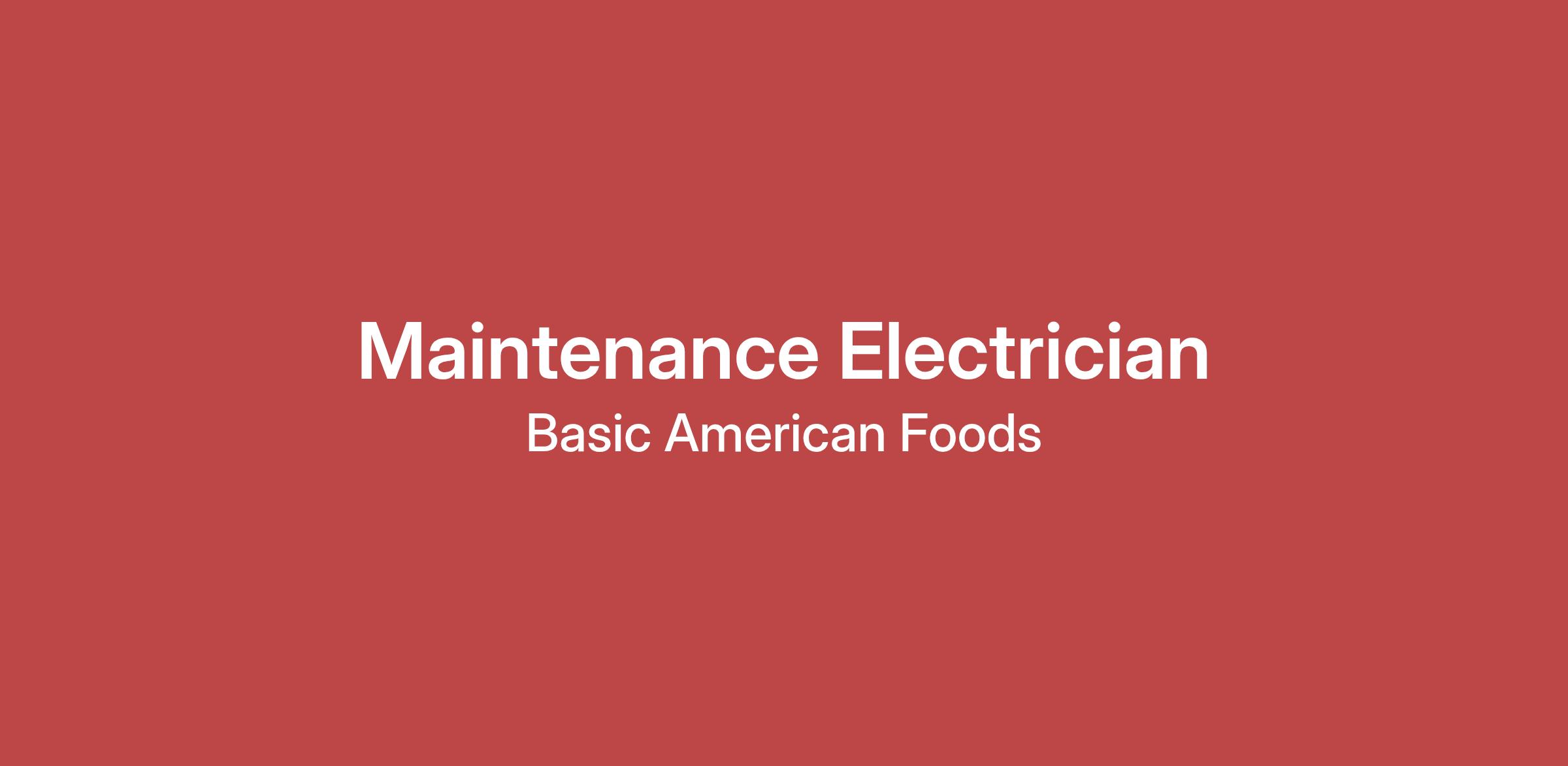 JOB TITLE: Maintenance Electrician
