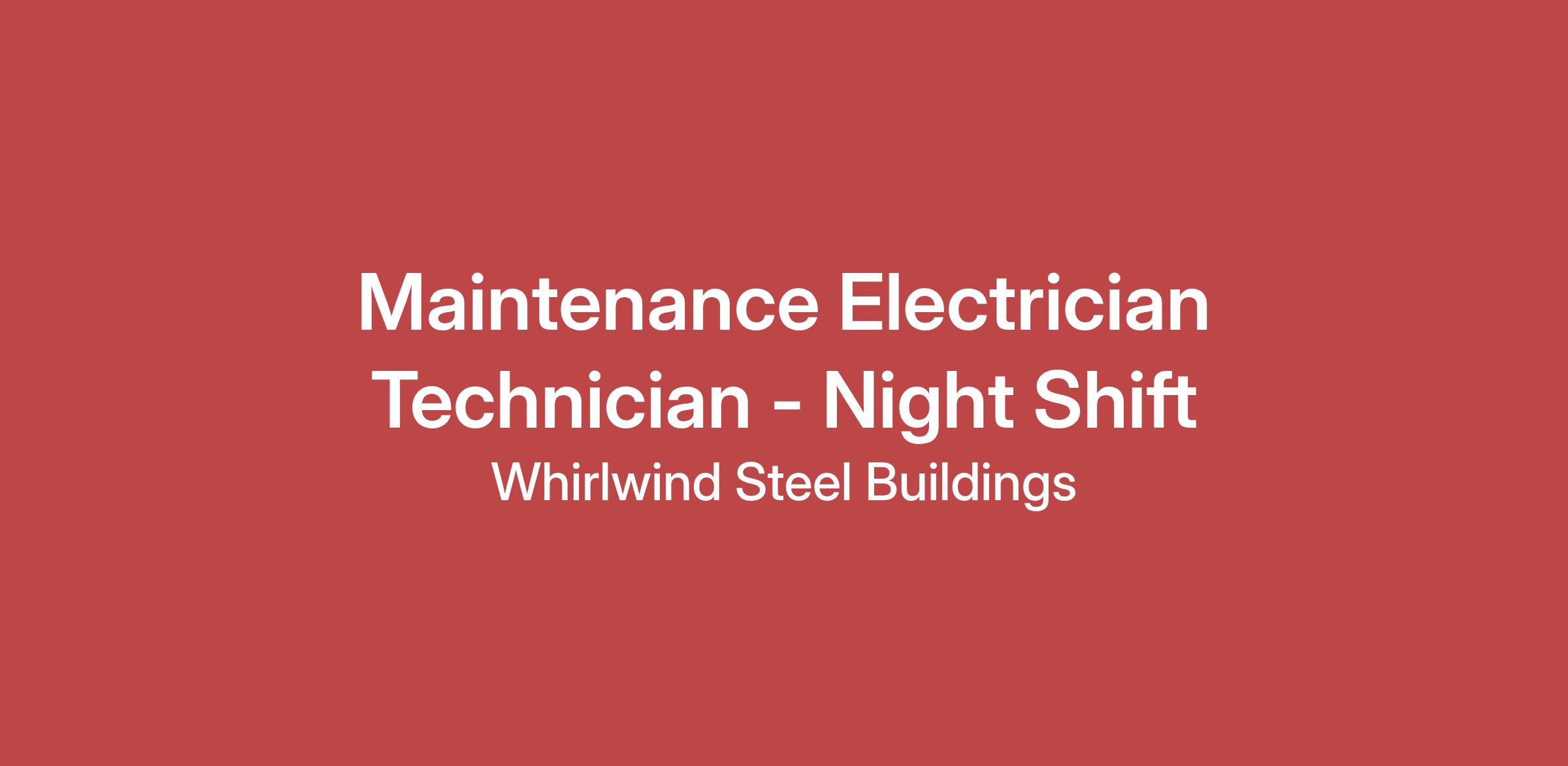 Job Summary: The Industrial Maintenance Electrician is responsible for ensuring optimal operation of machinery and mechanical equipment by completing preventive maintenance requirements on engines, motors, pneumatic tools, conveyor systems, and production machines; following diagrams, sketches, operations manuals, manufacturer's instructions, and engineering specifications; troubleshooting malfunctions.