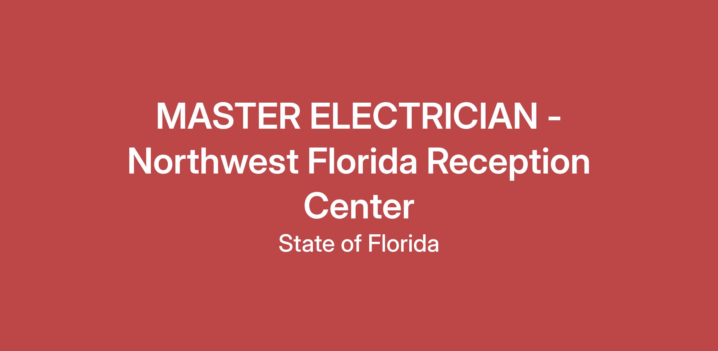 Working Title: MASTER ELECTRICIAN - Northwest Florida Reception Center