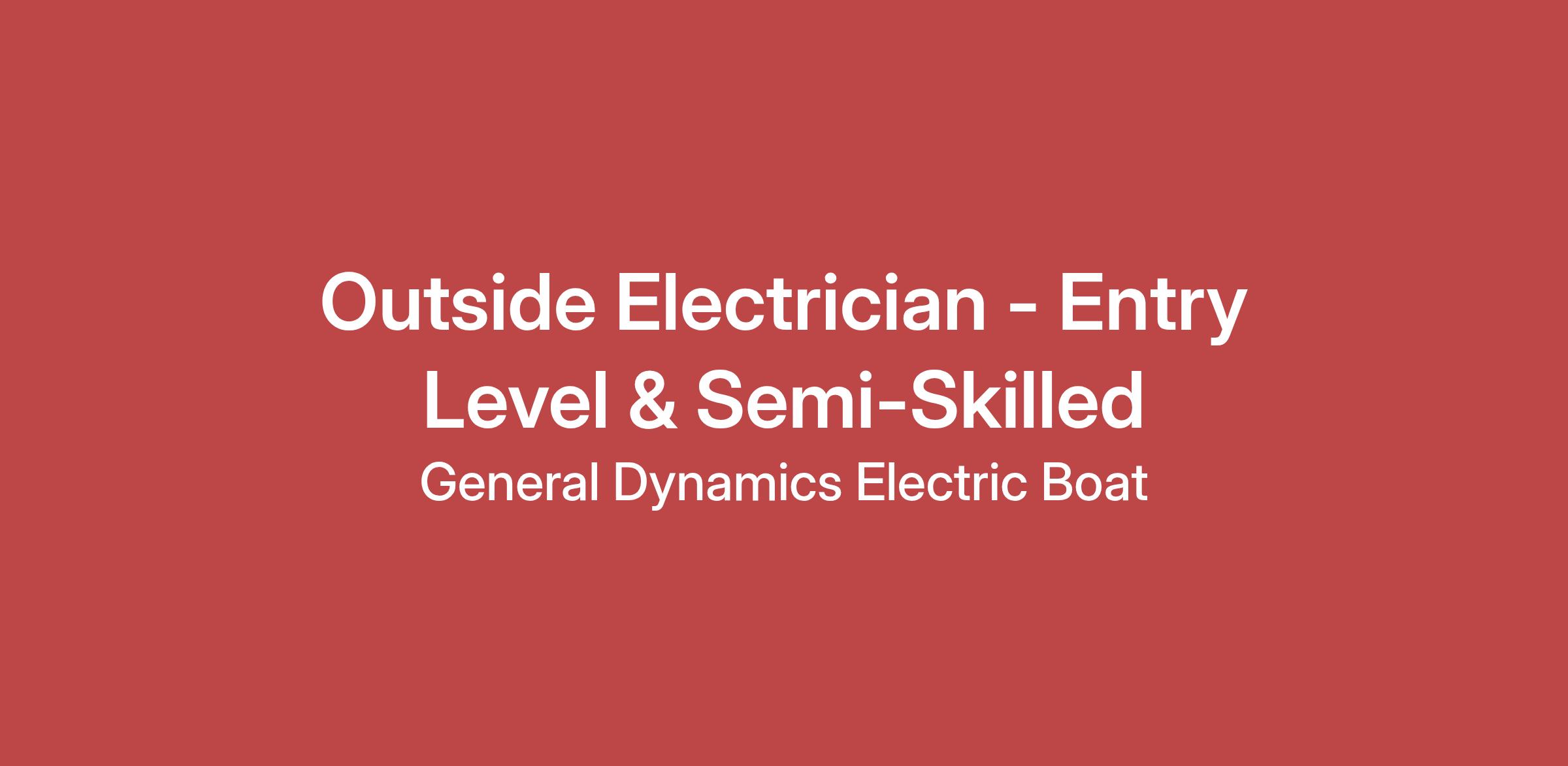 Electric Boat is the premier designer and builder of nuclear powered submarines for the US Navy and we are experiencing a period of unprecedented growth! We are looking for people who want to learn and grow within our Outside Electricians Department as we continue to build the most advanced submarines.