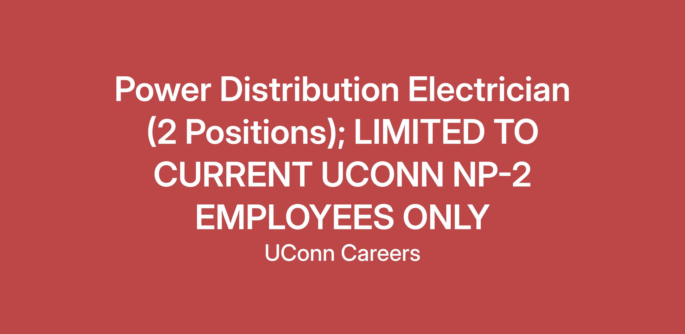 These positions are categorized as “Open to Agency Only”. Current, qualified UConn NP-2 QCW Electricians will be considered for the positions, as well as any other current, qualified NP-2 employees.