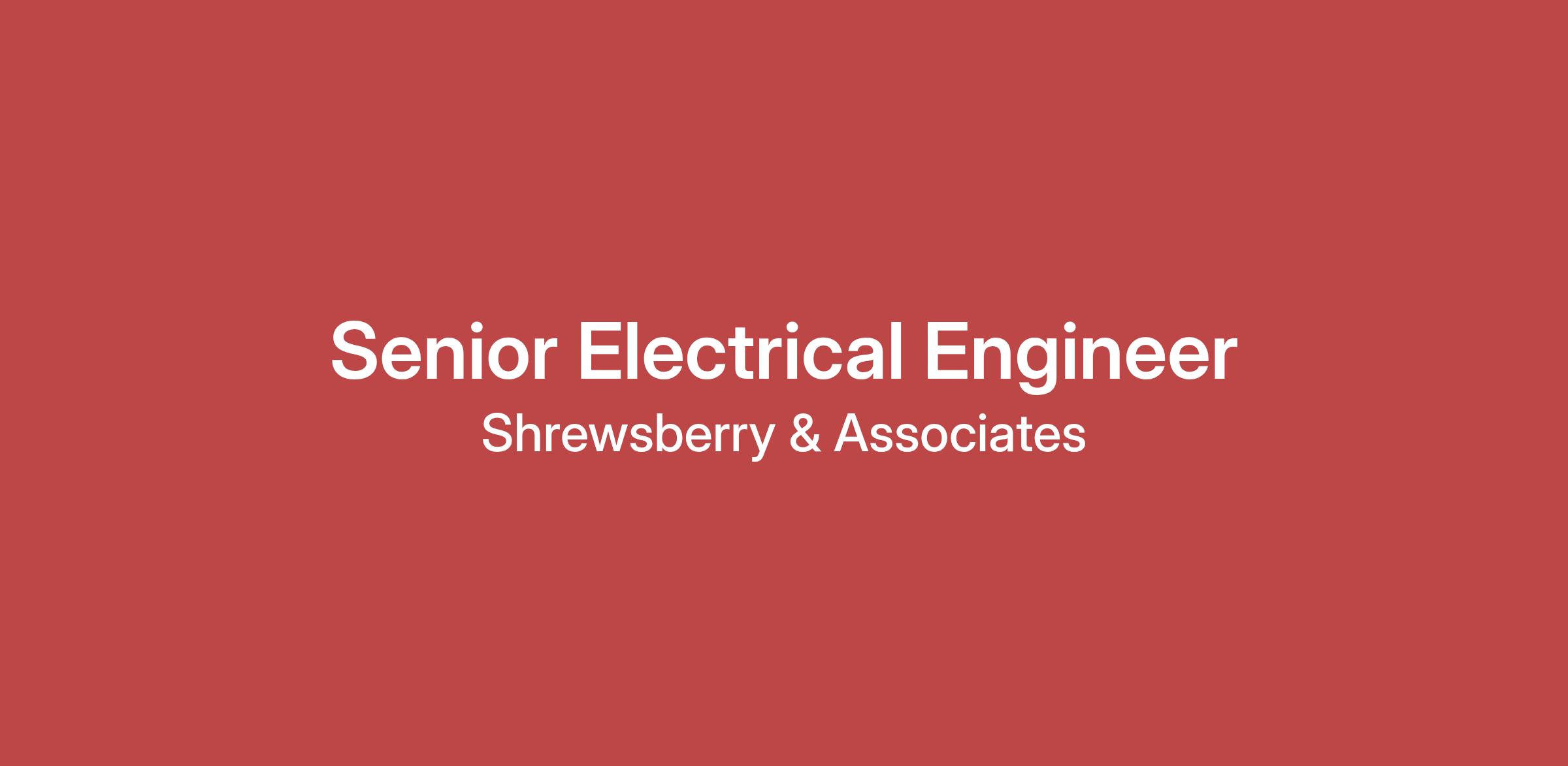 Shrewsberry and Associates is seeking a Senior Electrical Engineer for vertical infrastructure projects in the Federal and state & local government markets.
