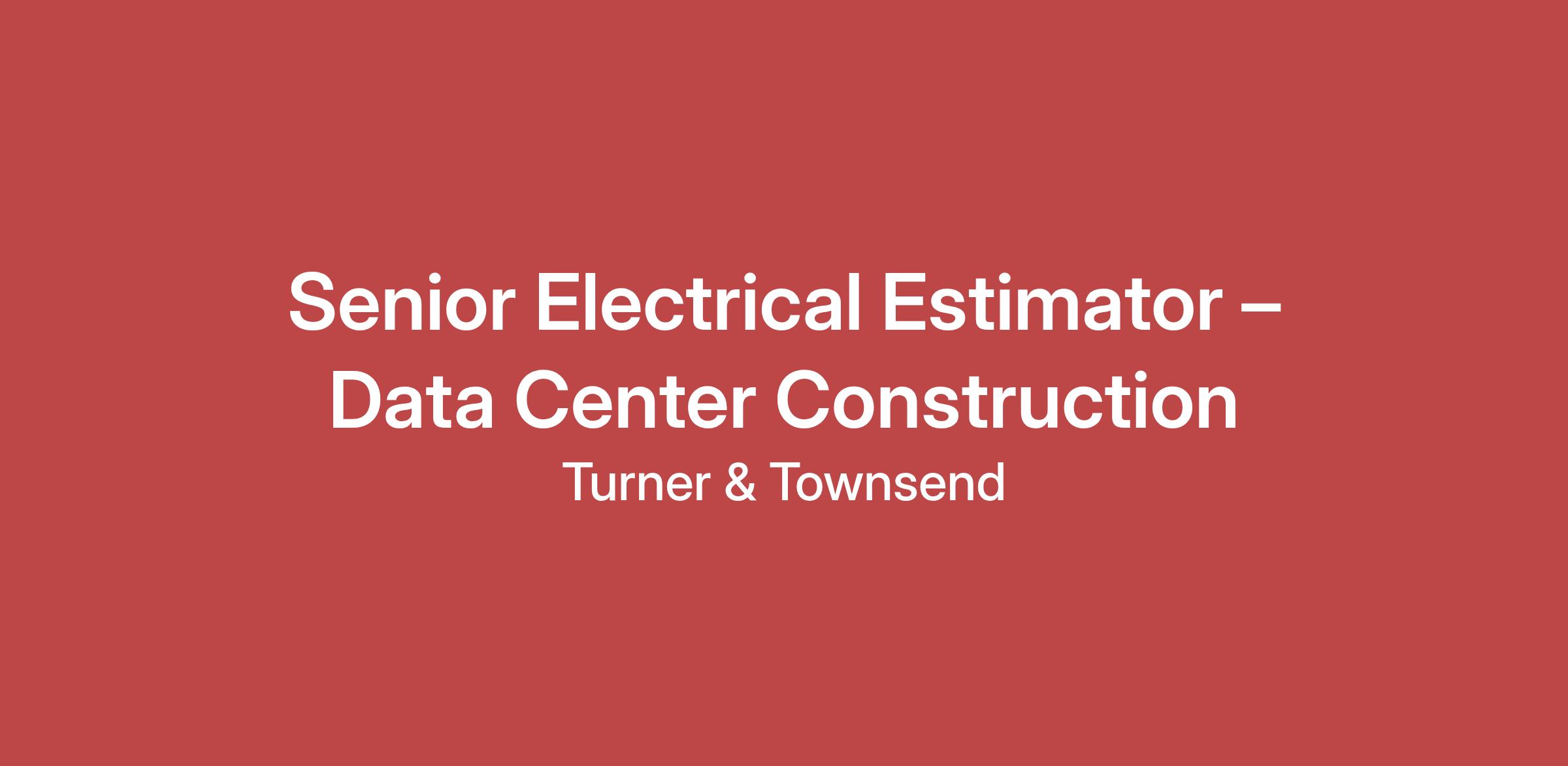 Turner & Townsend is seeking a highly skilled Senior Electrical Estimator to support large-scale, high-value data center construction projects for a key client. This role is ideal for professionals with deep experience in electrical estimating and a strong understanding of the complexities involved in hyperscale data center builds.