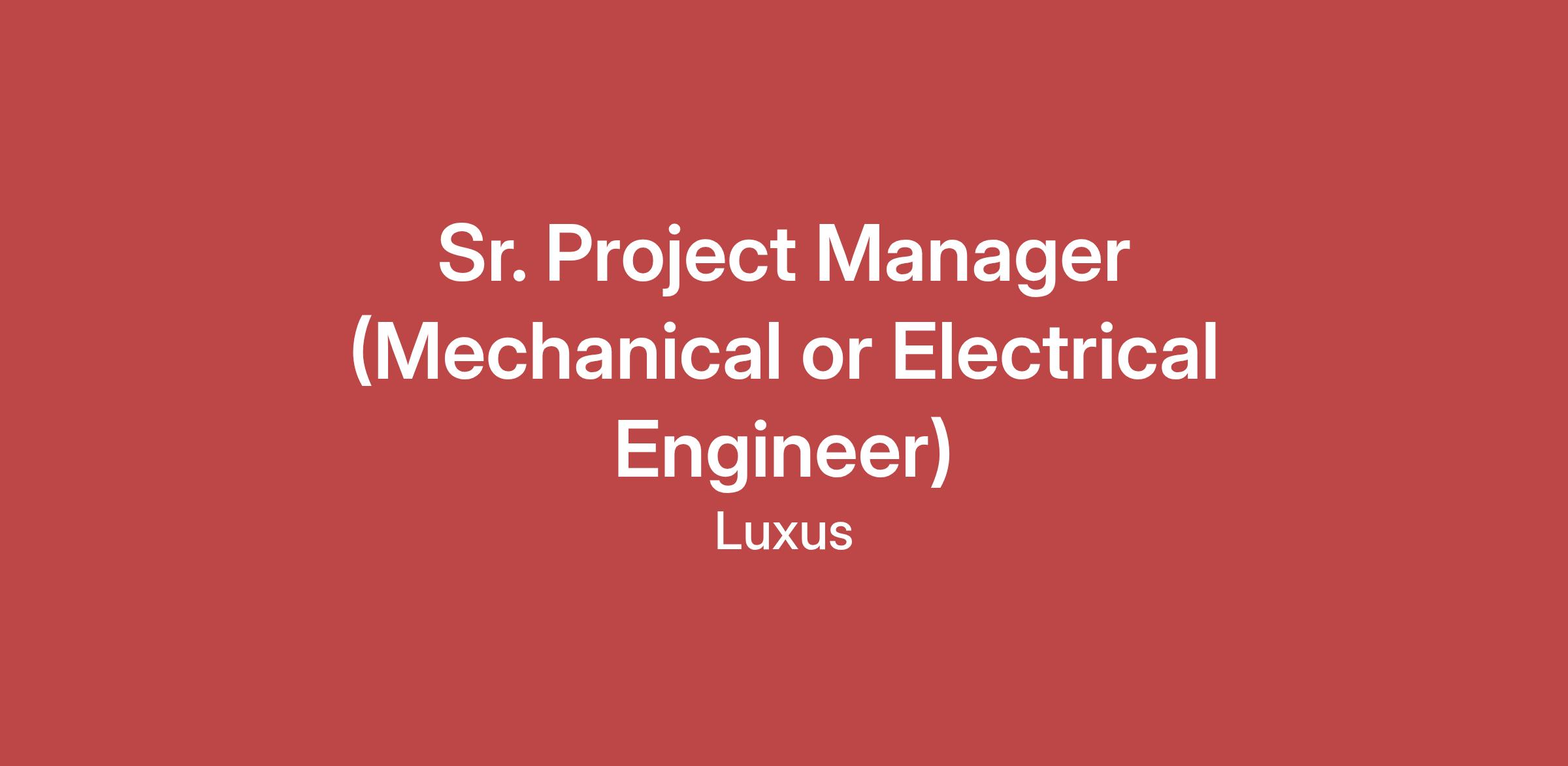 Job Title: Senior Project Manager – Mechanical (preferred) or Electrical Background (PE License Required)