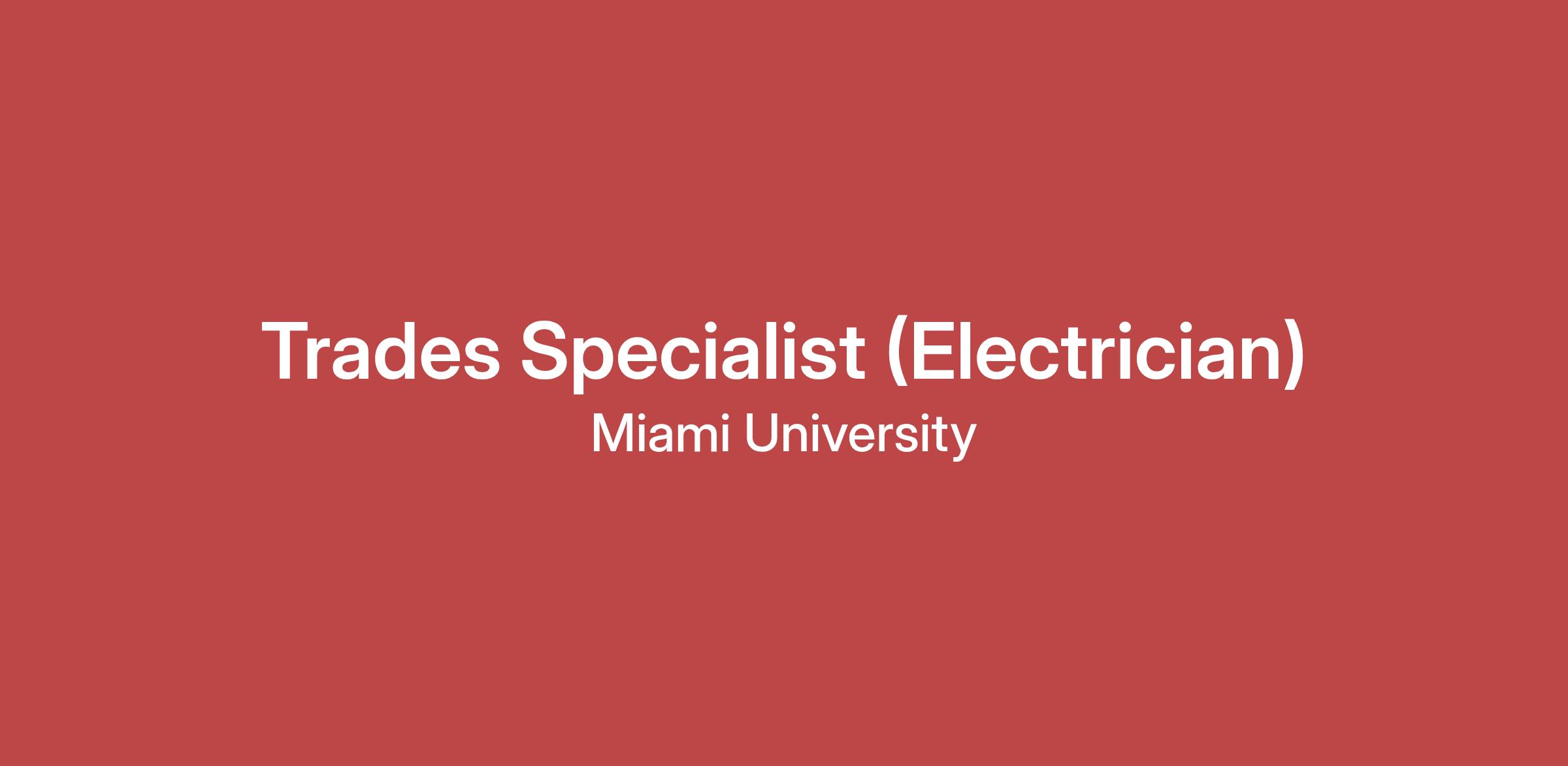 Trades Specialist (Electrician)Department